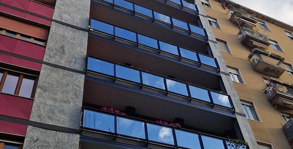 Il rinnovo estetico e cromatico di questa facciata è stata una volontà precisa dei residenti che ne invocavano lo svecchiamento: verniciature e nuovi parapetti progettati e realizzati ad hoc hanno permesso di ottenere un’immagine contemporanea e inusuale quanto sorprendente per questa residenza.